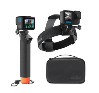 Gear up with must-have mounts for hiking, snorkeling and more. This kit features The Handler (Floating Hand Grip) for handheld footage in and out of the water, the Head Strap 2.0, perfect for immersive point-of-view shots, and a removable clip mount to attach your GoPro to baseball caps and more. It all comes bundled with a convenient carrying case at an awesome value.