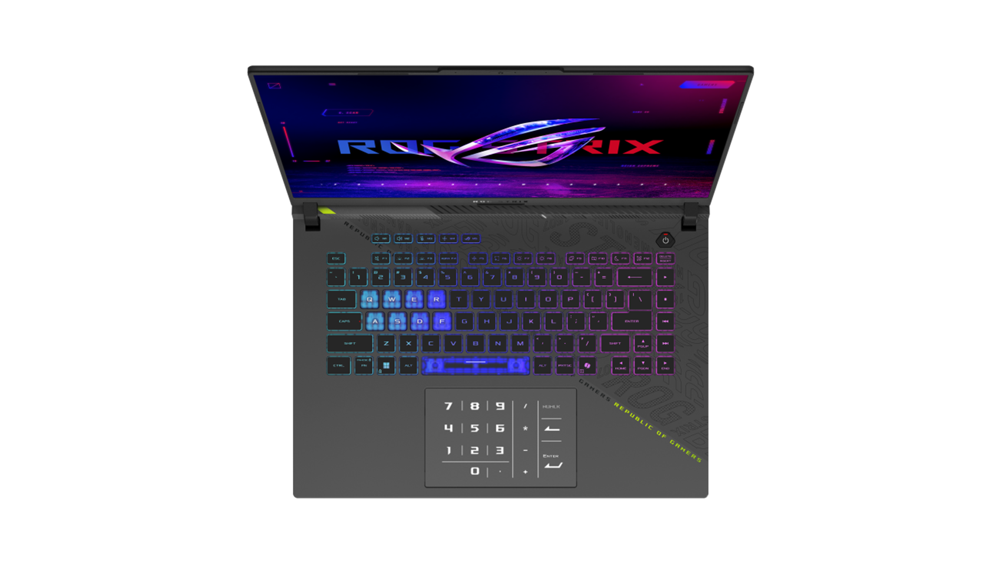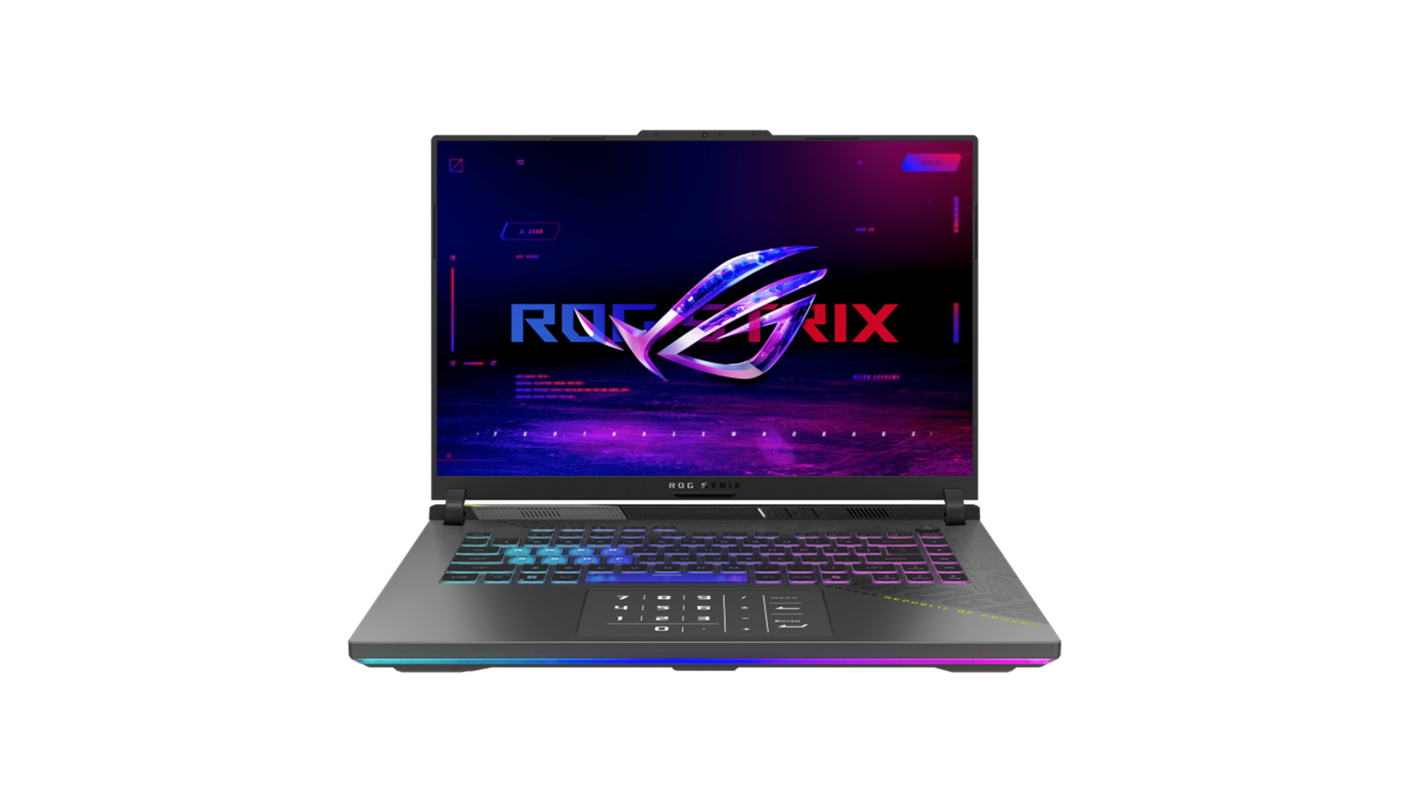 The Strix G16 comes with the world's most powerful gaming hardware out of the box, but ROG takes it a step further with performance tuning. In Extreme mode, the AMD Ryzen™ 9 9955HX3D has a power budget of 75W, while we've boosted the NVIDIA® GeForce RTX™ 5070 Ti graphics card to an incredible 140W. When configured in Manual mode, the CPU can allocate an additional 20W, bringing the total system power budget to an incredible 215W. Trust ROG to give you the ultimate gaming laptop.