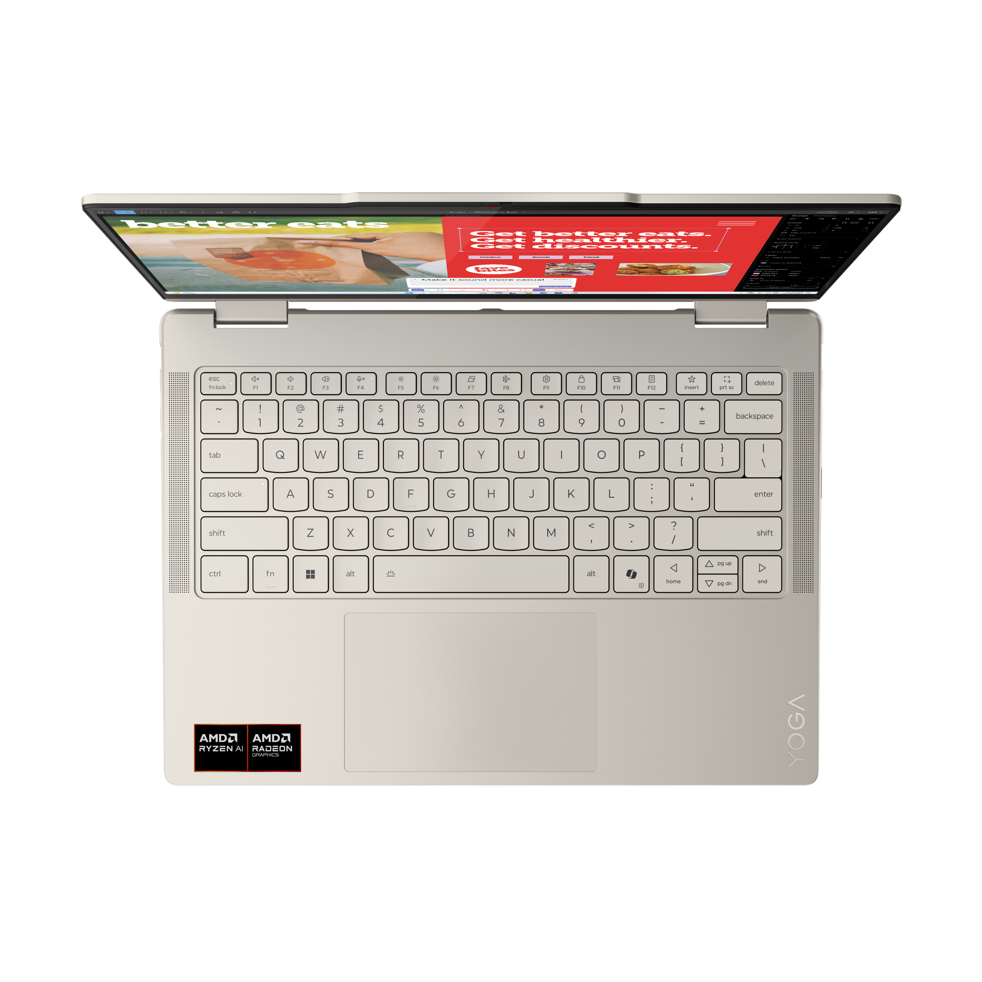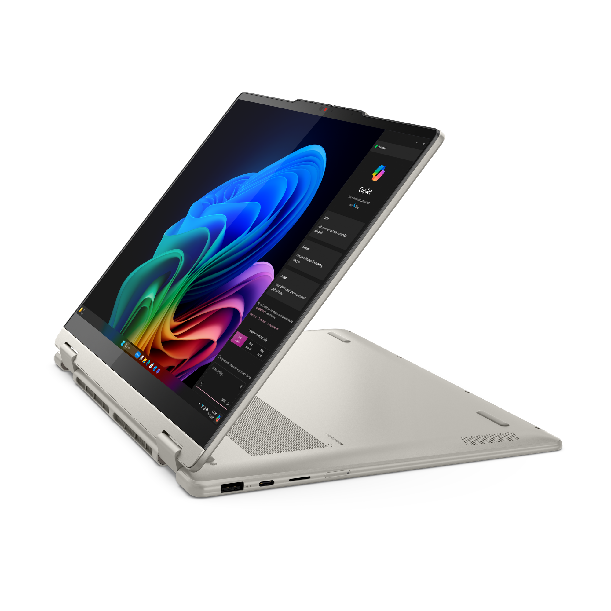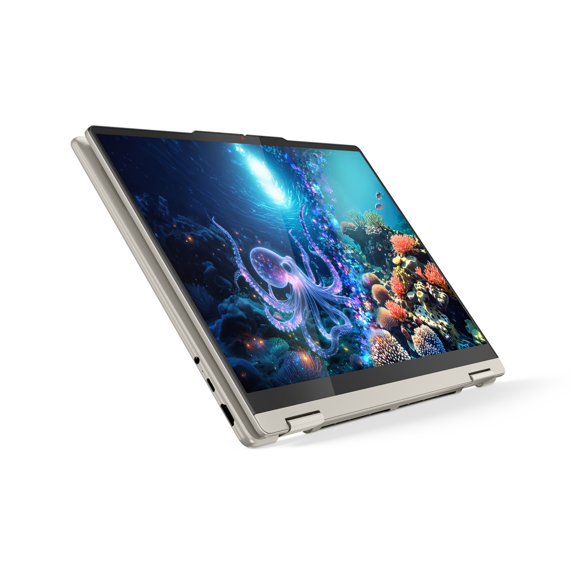 Create anywhere with the Yoga 7 2-in-1 Gen 10 (14″ AMD). Its 360° design and touchscreen let you switch between tablet, tent, and laptop mode. Add the optional Yoga Pen for precision. Powered by AMD Ryzen 300 AI processors and up to a 50+ TOPS NPU, this Copilot+ PC balances power and performance.