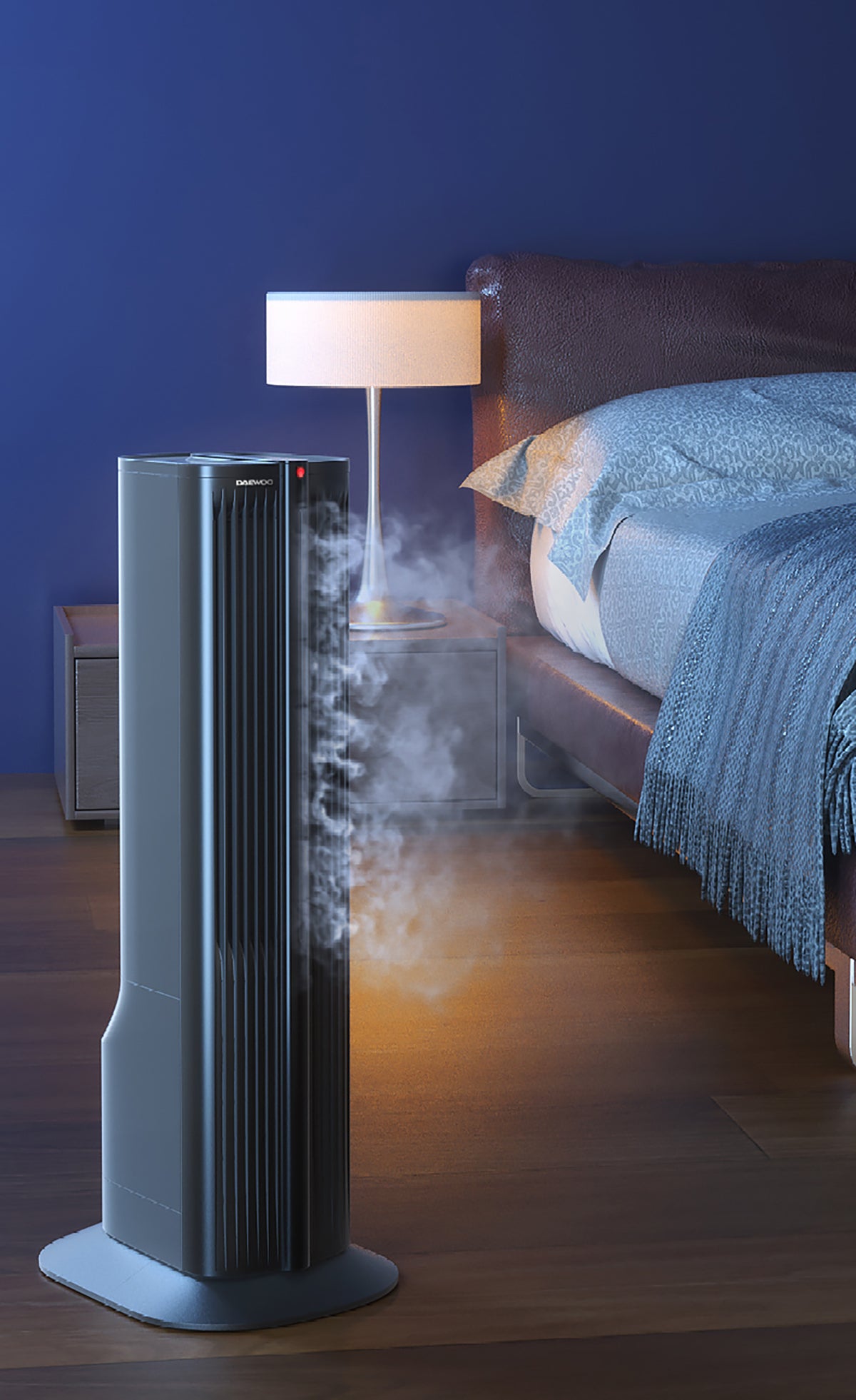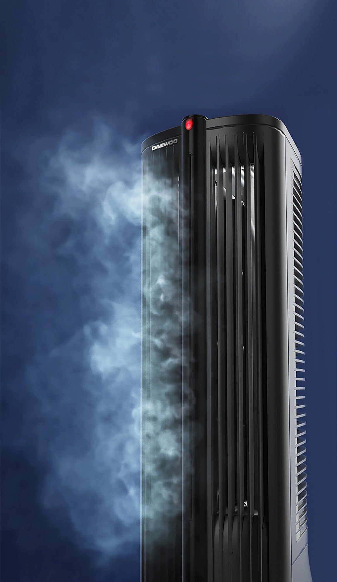 DAEWOO 3 in 1 multifunction Heat/Cool/Humidifier Tower Fan. Two-level heating adjustment. Cold air / warm air /humidifier selection. Dumping and power failure protection.Touch panel and display.Remote control. Can add water essential oil.