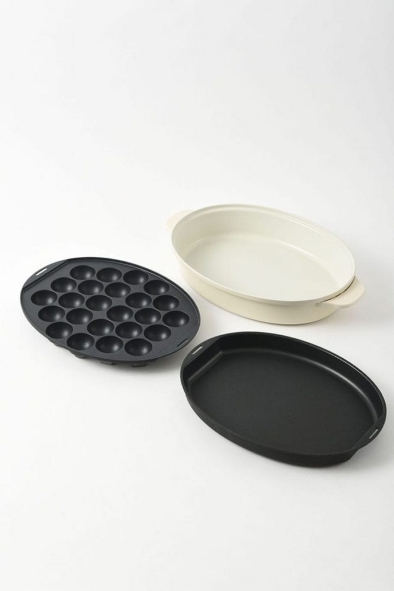 Multifunctional Oval Hotplate / Upgraded 1430W heater for better heating performance / Included Flat plate, Takoyaki plate, Ceramic coated pot