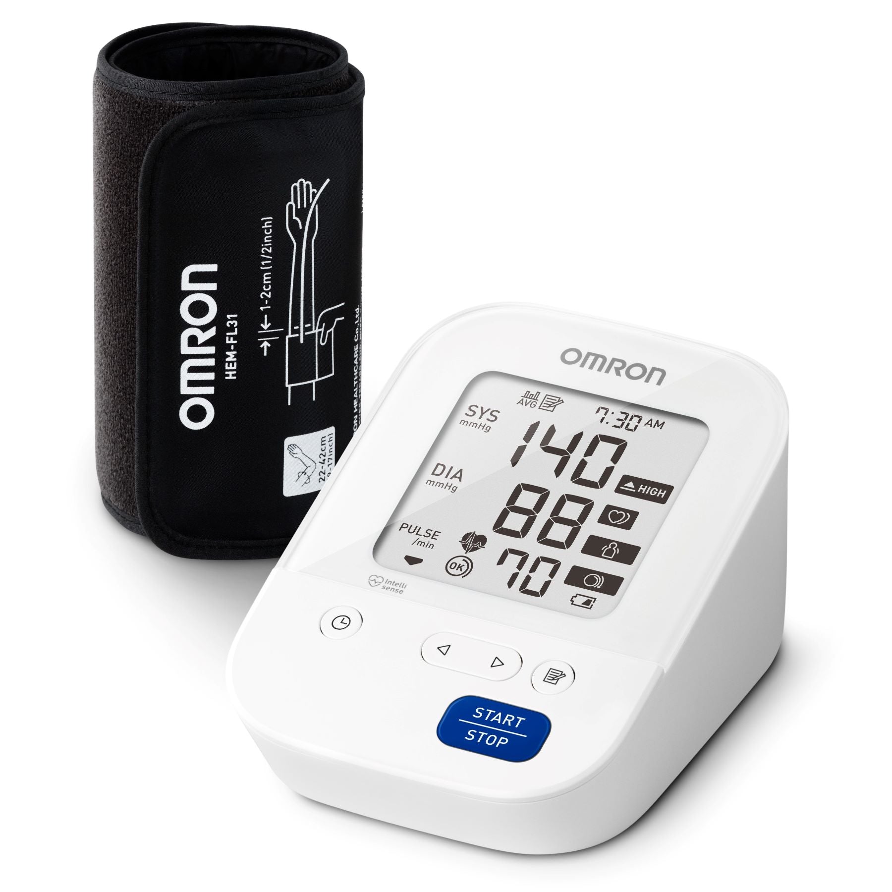 The IntelliSense technology automatically inflates the cuff to the ideal level for each measurement, eliminating the need for the user to adjust the inflation level. With just the press of a button, the IntelliSense technology delivers accurate blood pressure measurements comfortably and easily.