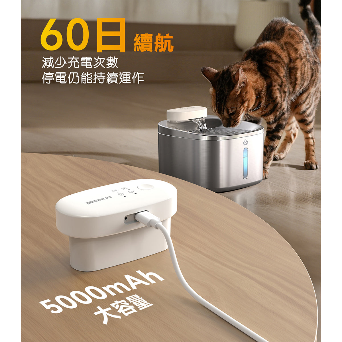 The water dispenser is wirelessly designed and does not require wiring. It can be flexibly placed according to the home environment or pet preferences.