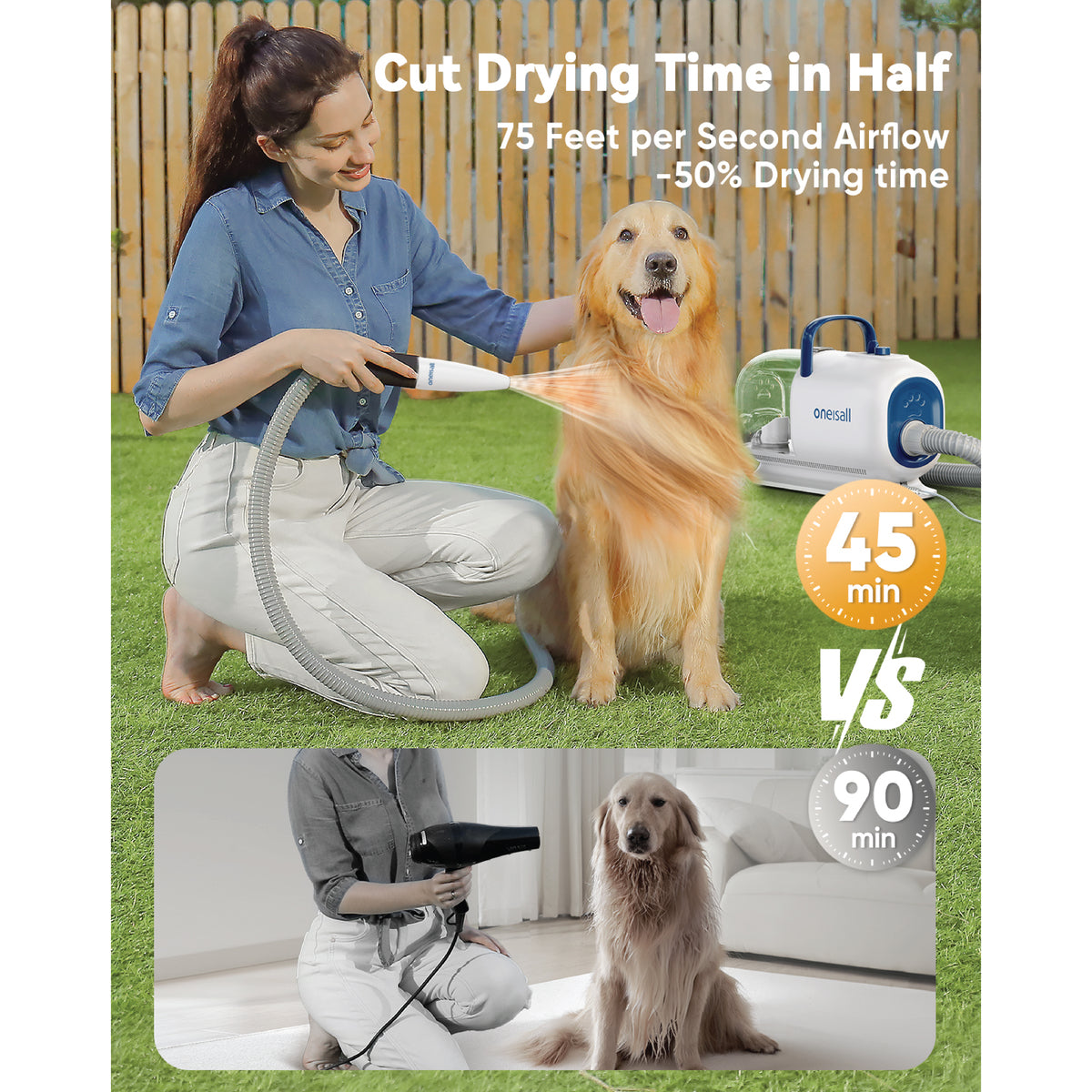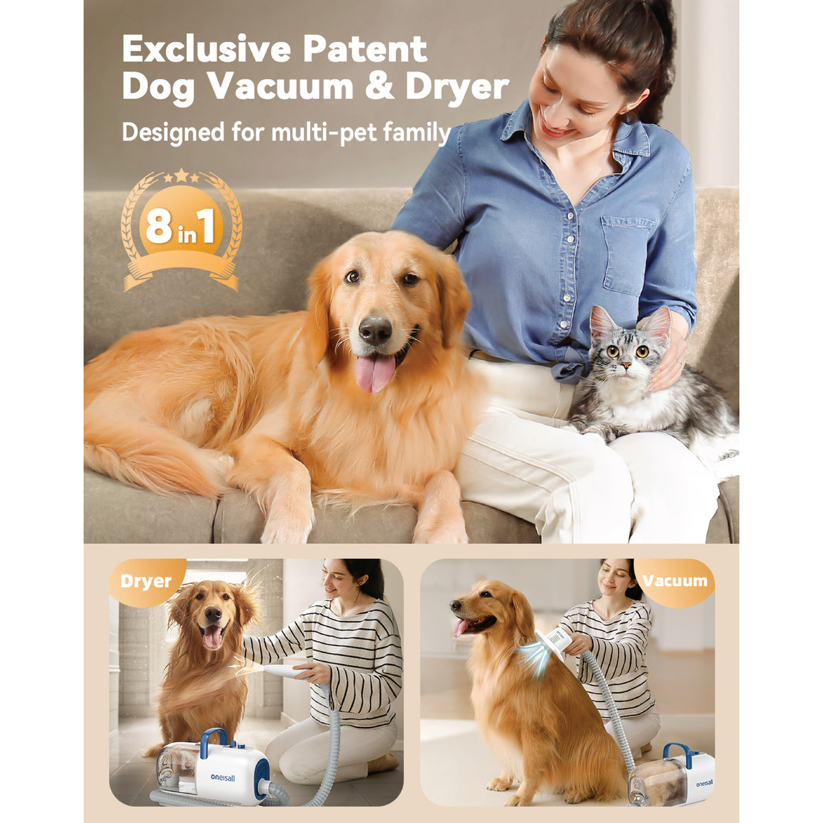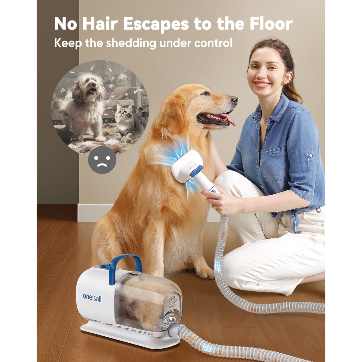 Oneisall launches the world's most versatile pet machine, KYLE Pet Grooming Vacuum Hair Collector, which can comb and suck hair at the same time, eliminating the need for hair to fly everywhere while combing. It also has a blow-drying function, saving time and operating in an ultra-quiet manner, so pets are no longer afraid of hair cutting or hair blowing.