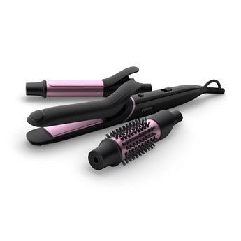 • 3 in 1 ceramic coating styler including straightener, curling barrel and hot brush