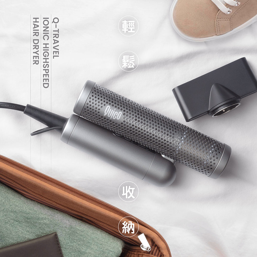 The QUICO Q-Travel Ionic Highspeed Hair Dryer with its foldable design &