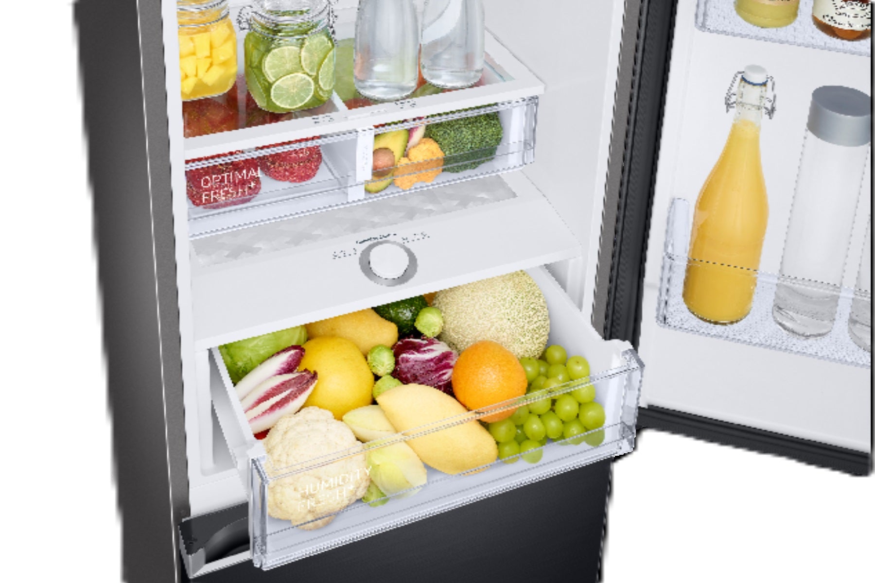 Store more, Save more energy; SmartThings AI Energy Mode; SpaceMax™ Technology - More space inside, same depth outside; SmartThings Energy; SmartThings Home Care; All-around Cooling-Preserves food freshness for longer; Frost free food freshness for longer; Optimal Fresh+; Humidity Fresh+; Power Cool+Power Freeze; Big Door Bin; Flushed Door-Opens a full 90 degree even next to a wall; Seamless & Sleek Design; Clean Back-Easy to clean, durable & protective back; Digital Inverter Compressor with 20 years warranty